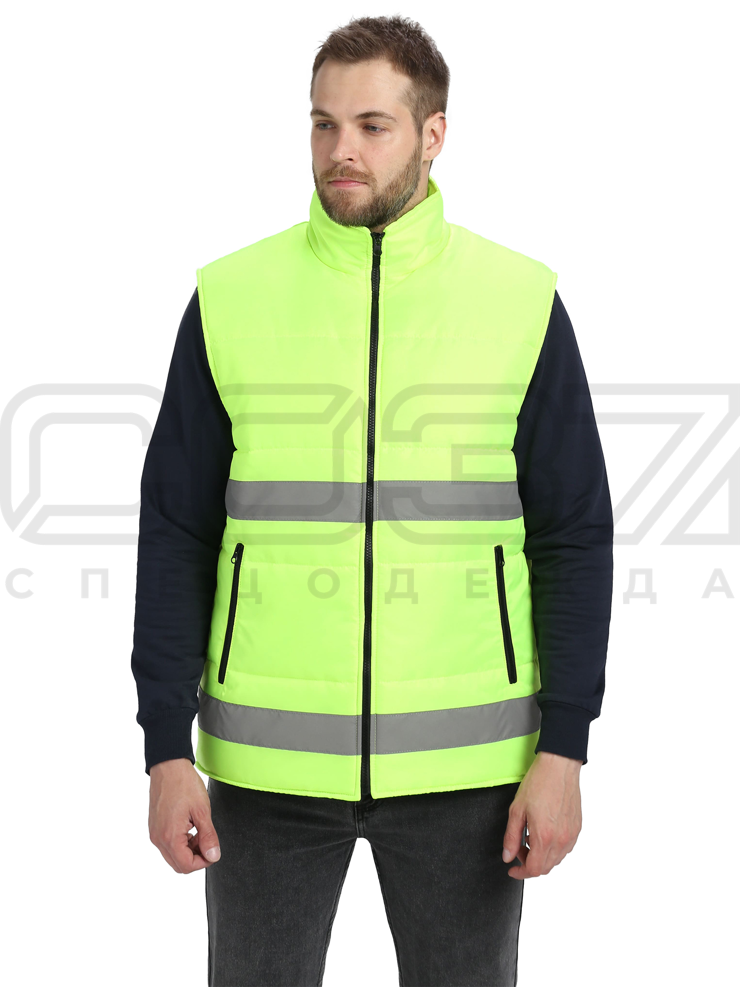Жилет сигнальный утеплённый "Квазар" с СОП цв.лимонный тк.оксфорд в Сахалине