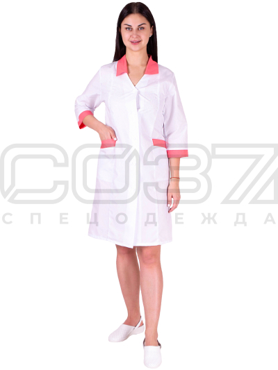 Халат медицинский женский "Аспирант" цв.белый/коралл тк.тиси в Сахалине