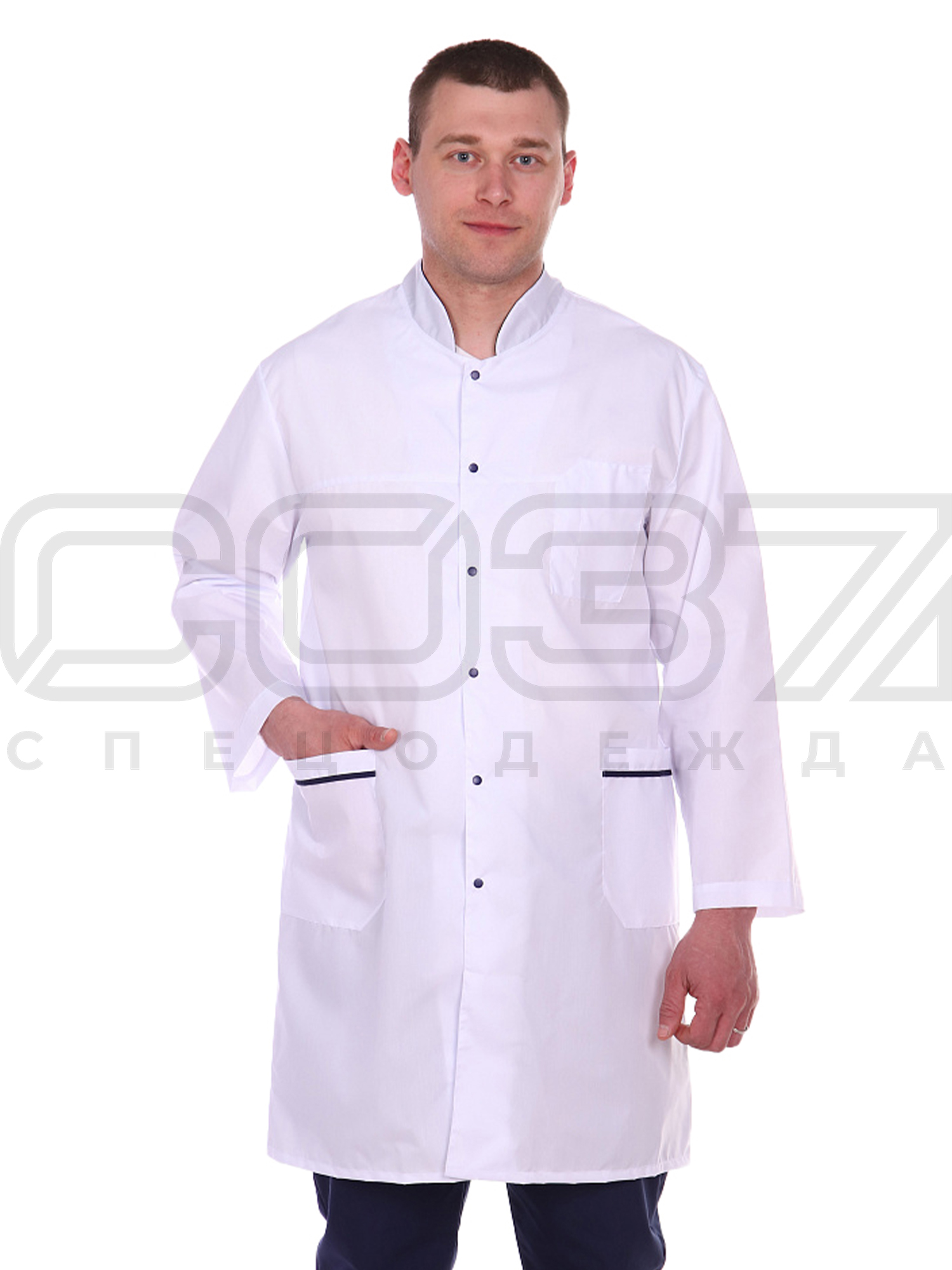 Халат медицинский мужской АР508 цв.белый тк.тиси в Сахалине