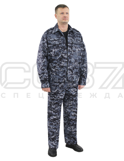 Костюм рабочий охранника "Омега" цв.цифра/синий тк.смесовая в Сахалине