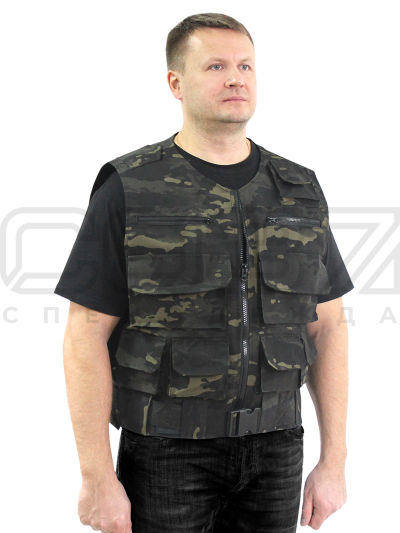Жилет летний "Сайга" цв.мультикам/чёрный тк.рип-стоп в Сахалине