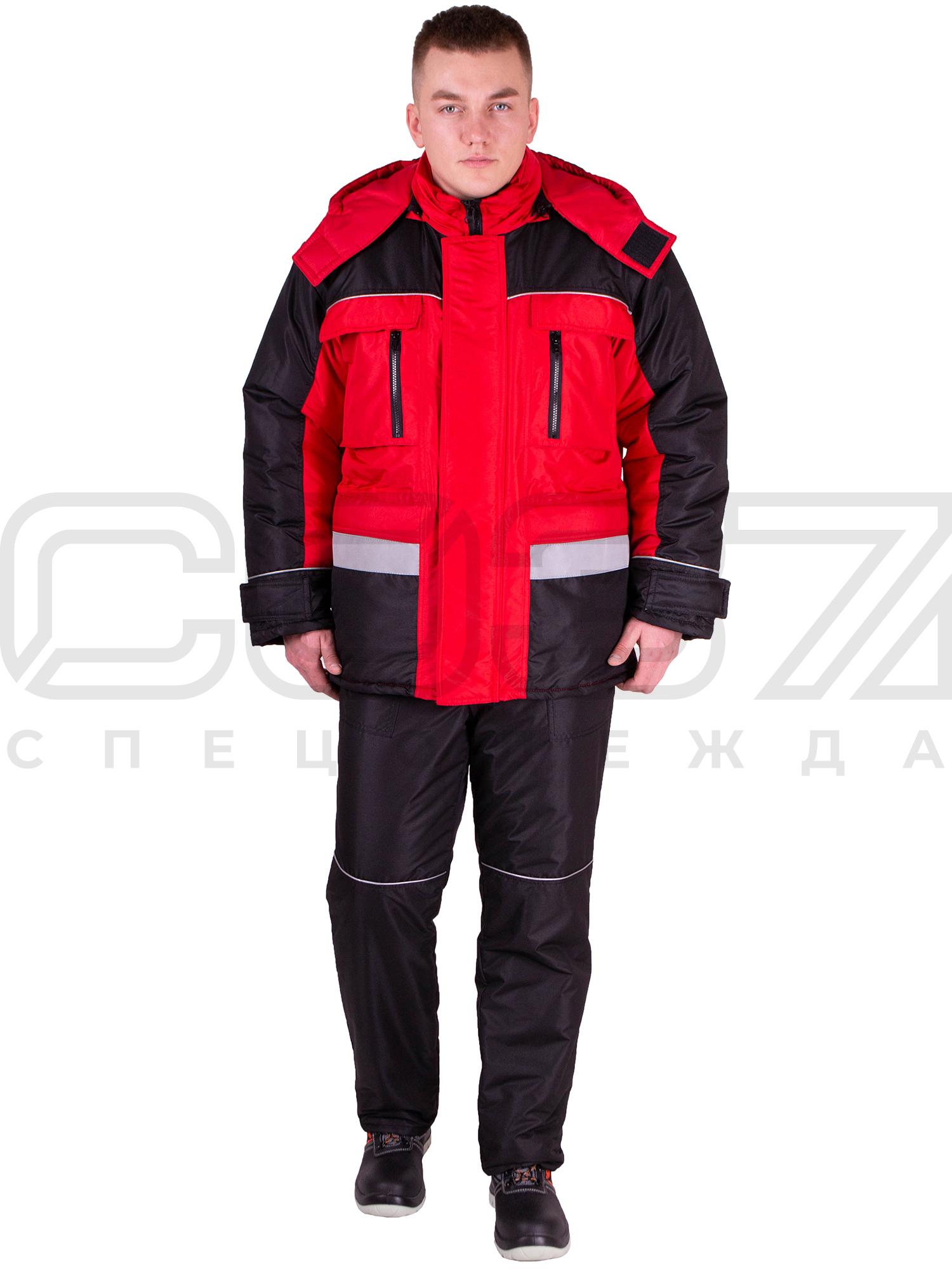 Куртка рабочая зимняя "Импульс" с СОП цв.красный/чёрный тк.оксфорд в Сахалине