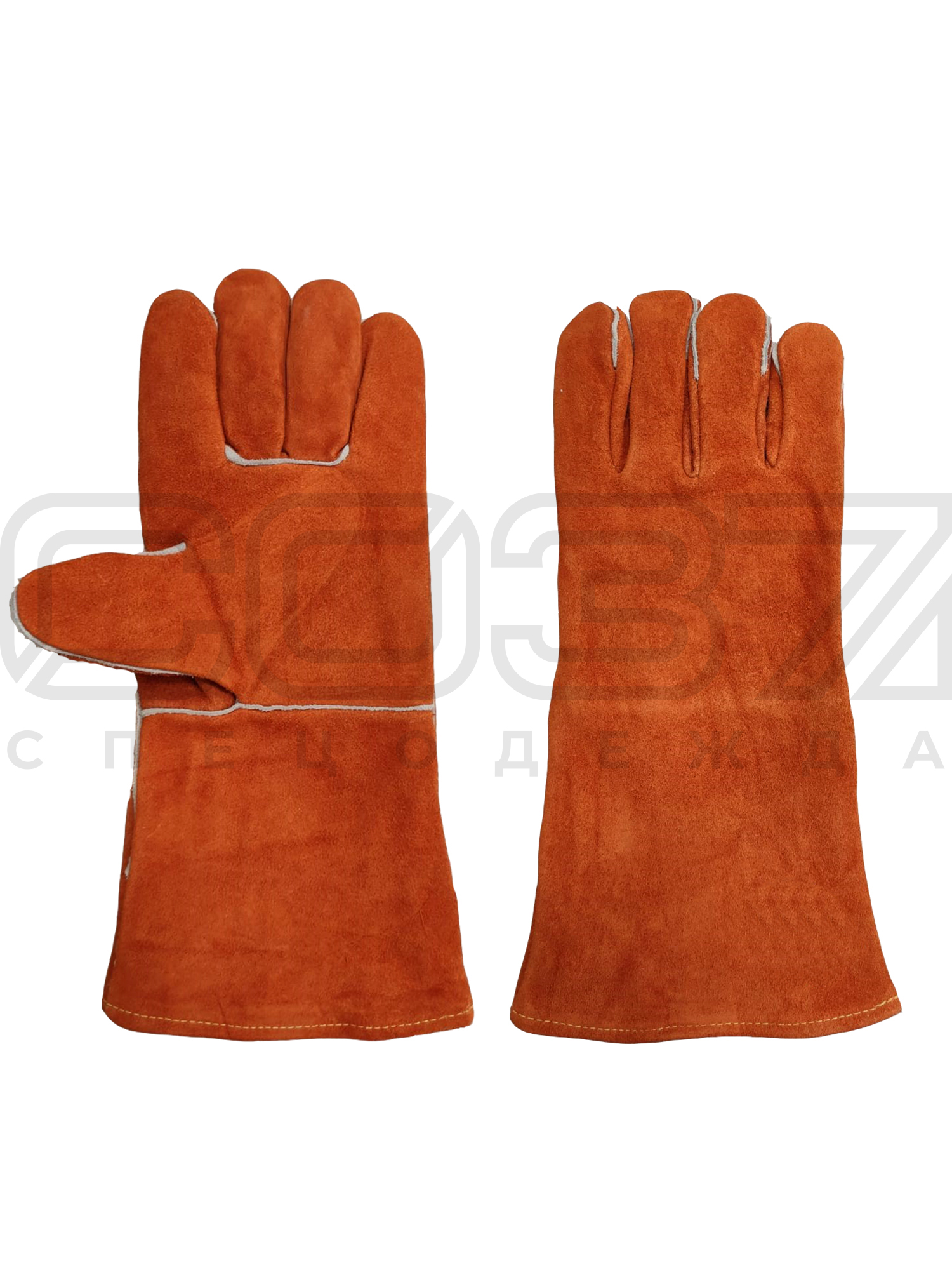 Краги пятипалые спилковые с подкладом оранжевые (36 см) в Сахалине