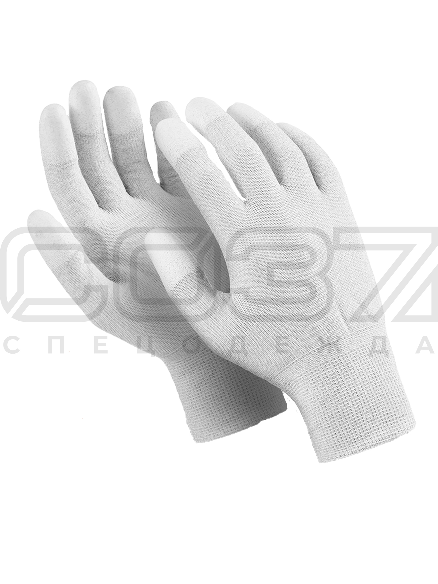 Перчатки антистатические двойной оверлок 13 класс вязки полиуретан на кончиках пальцев.