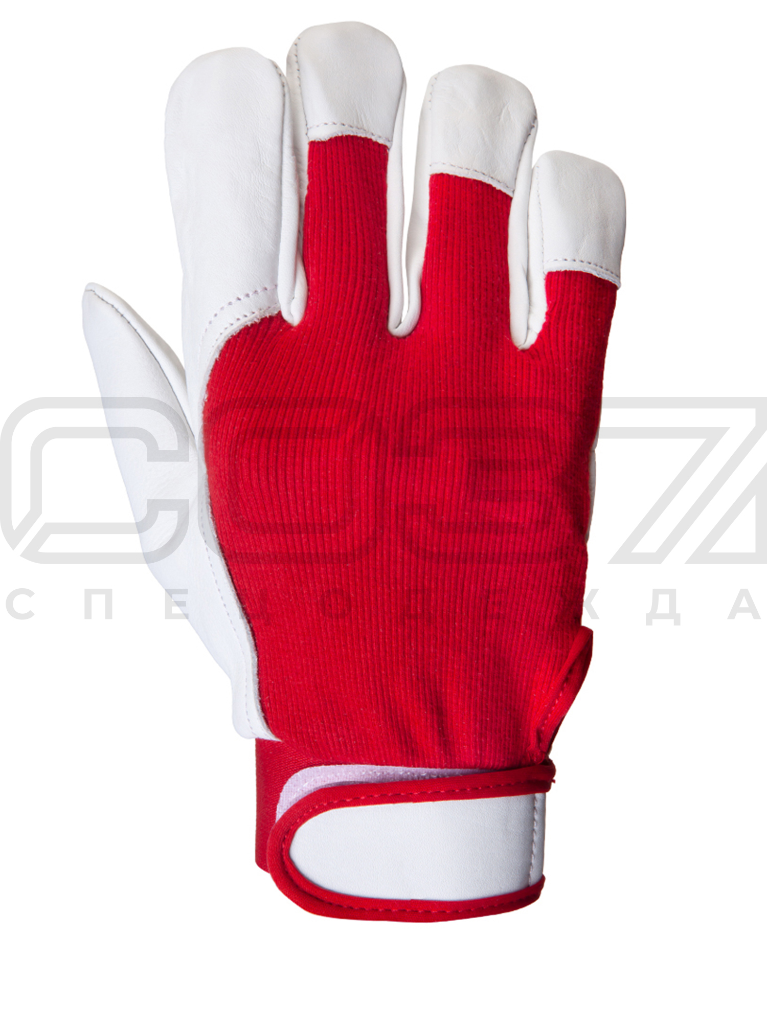 Перчатки кожаные JS комбинированные с тканью манжета velcro цв.красный/белый в Сахалине